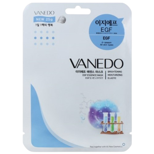 [VANEDO] EGF Essence Mask is a functional mask pack designed to supply nutrition and vitality to the skin. This water-soluble essence mask contains natural plant ingredients and is designed to always keep your skin lively and smooth. It is formulated with EGF (Human Oligopeptide-1), an epidermal cell growth factor that gives energy to tired skin. It provides a boosting effect to help maintain a smooth, strong, and healthy complexion. Perfect for ‘the happiness of 1 pack a day’, this mask is a great choice for revitalising your skin.