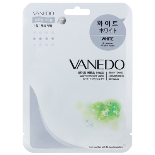 [VANEDO] White Essence Mask is a daily use sheet pack certified as a functional whitening cosmetic by the Korean Ministry of Food and Drug Safety. This water-soluble essence mask contains natural plant ingredients and is designed to keep your skin lively and smooth. Its key whitening ingredient, Arbutin, helps to improve skin tone and cares for dull skin, leaving it looking healthy and transparent. It also provides a powerful moisture supply, helping you to achieve a hydrated and luminous complexion.