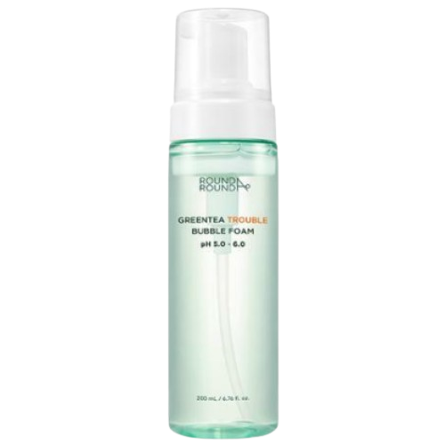 Enjoy the soothing and refreshing cleanse of [ROUND A’ROUND] Greentea Trouble Bubble Foam, designed to care for acne-prone skin with rich, mild bubbles.