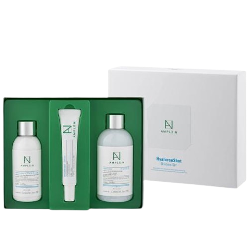 Transform your skincare routine with the [AMPLE.N] HyaluronShot Set, featuring low-molecular hyaluronic acid and ceramide to nourish and protect dry skin.