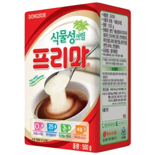 [Dongsuh] Frima is a clean and savoury vegetable-based coffee creamer, an iconic staple in Korean households. This smooth powder is made using vegetable coconut oil and a hardened vegetable oil with 0g of trans fat. It dissolves instantly in hot coffee to deliver a rich, velvety texture and a balanced, savoury flavour that perfectly complements your favourite instant coffee. It’s the secret to a perfect, authentic Korean coffee mix.