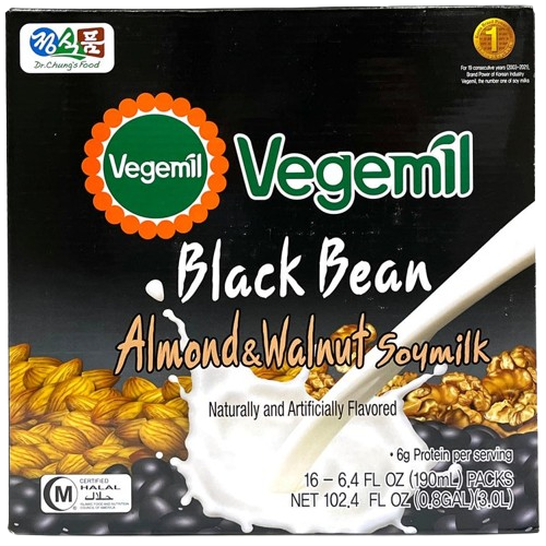 [Dr.Chung’s Food] Vegemil Black Bean Almond & Walnut Soymilk is a nutritious plant-based beverage that combines Korean black beans with the nutrition of tree nuts, including almonds and walnuts. Each serving provides 6g of protein and is a good source of Vitamin D, offering a wholesome and savoury taste.