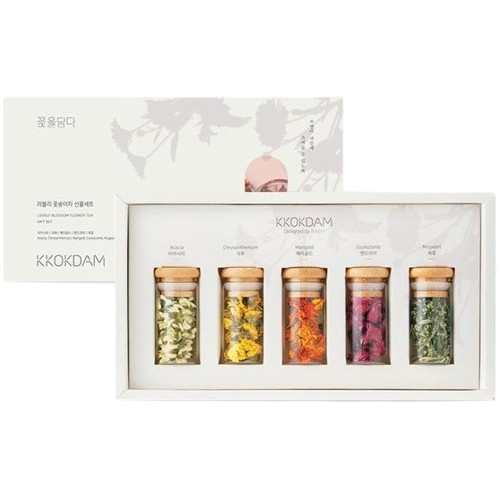 [KKOKDAM] Lovely Blossom Flower Tea Gift Set is a delightful collection of five premium flower teas—Acacia, Chrysanthemum, Marigold, Cockscomb, and Mugwort. Each tea offers a unique flavour, aroma, and beautiful infusion colour, perfect for creating an elegant and relaxing tea-time atmosphere. Handcrafted with care, these teas are a thoughtful gift for any occasion.
