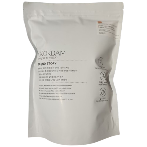 [KKOKDAM] Refresh Flower Water Orange Marigold combines the vibrant zest of oranges with the rich floral aroma of marigold petals. This premium flower tea is crafted to bring nature’s freshness and a hint of elegance into your everyday life. Its vivid citrusy brightness paired with the gentle floral notes makes it an excellent choice for moments of relaxation or revitalisation. Enjoy this versatile tea warm or chilled, tailored to your preference.