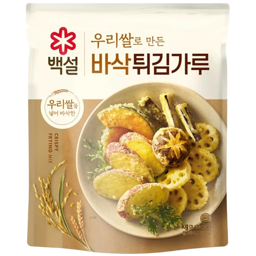 [CJ CheilJedang] Beksul Crispy Frying Mix is a representative frying mix product from CJ CheilJedang that makes fried dishes extra crispy and delicious. It is made using a patented flour developed by Beksul to maximize crispiness, and contains domestic Korean rice for an even crispier and more savoury result. As it contains a perfect blend of various ingredients like onion, garlic, and pepper, there is no need for you to season your ingredients separately, making it an incredibly convenient and essential cooking ingredient.