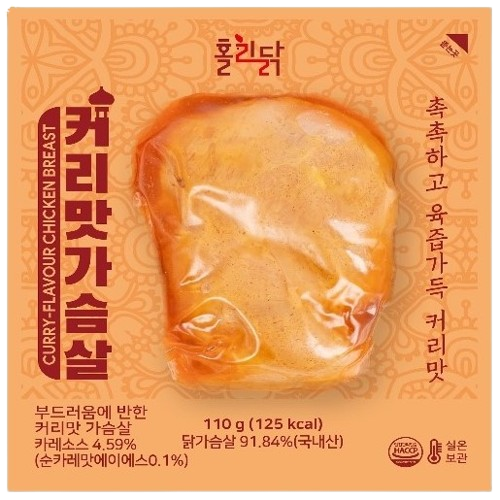 [The Won Food] Holy Dak Curry-Flavoured Chicken Breast is a product that allows you to enjoy chicken breast deliciously, with a subtle curry scent. Like other Holy Dak products, it can be stored at room temperature, making it convenient to eat anytime, anywhere. Manufactured using a patented sterilization technology, it doesn’t require refrigeration. It is made to be moist and soft, reducing the characteristic toughness of chicken breast. Despite its low energy value of around 523 kJ per 110g pack, it is rich in protein, helping you to manage a healthy diet.