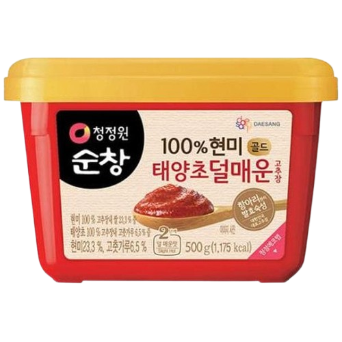 [Chungjungone] Sunchang 100% Brown Rice Less Spicy Gochujang is a representative Korean hot pepper paste, made mild so that even children or those who cannot eat spicy food can enjoy it. It is characterized by a deep and rich umami taste from the use of brown rice and sun-dried ‘taeyangcho’ chilli powder. Made with the traditional Sunchang fermentation method and aged in earthenware pots (‘hangari’), it has a clean, authentic taste. It is an essential, versatile paste for adding a rich flavour to your Korean dishes.