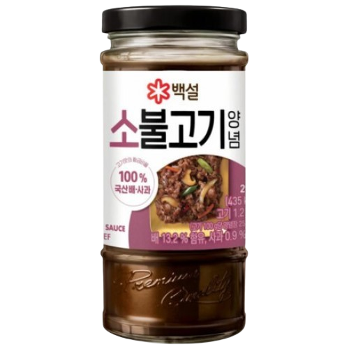 [CJ CheilJedang] Beksul Bulgogi Sauce for Beef is a product that helps you conveniently make beef bulgogi at home. It uses purees made from 100% domestic Korean pears and apples to create a natural sweetness, which also helps to tenderize the meat, making it softer and richer. Soy sauce and various seasonings are blended in an optimal ratio, creating the golden ratio for meat flavour. Simply marinate your meat in the sauce to create a delicious dish without any complex processes.