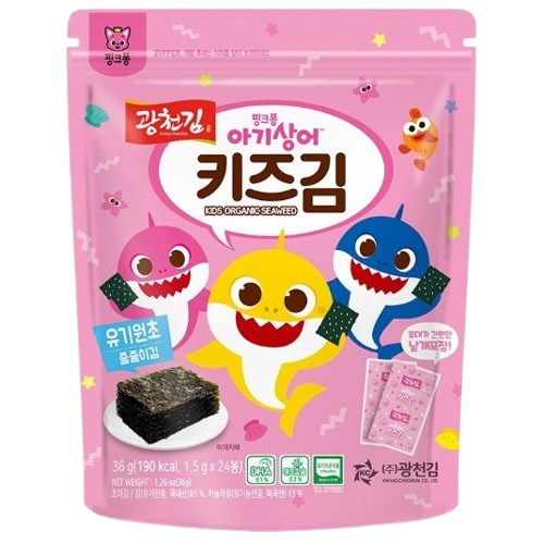Experience the crispy and flavourful taste of [Kwangcheonkim] Pinkfong Organic Seasoned Seaweed—perfect for a fun and nutritious snack anytime, anywhere.