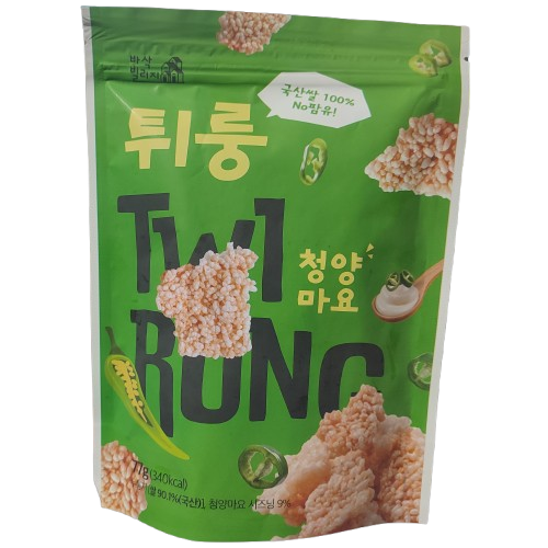 [Dongseon Food] Twirung is a modern reinterpretation of the traditional Korean nurungji snack, made without palm oil. This snack is uniquely crispy yet soft, made from scorched rice that is lightly fried for an extra crunchy texture. Each piece is generously seasoned with an addictive blend of spicy Cheongyang chili pepper and rich, creamy mayonnaise, creating a perfect harmony of nutty, savoury, spicy, and creamy flavours.