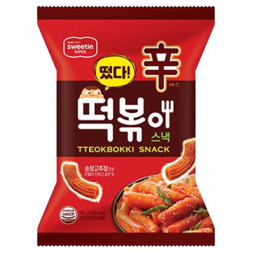 Features a crispy texture in a fun, bite-sized tteokbokki shape.