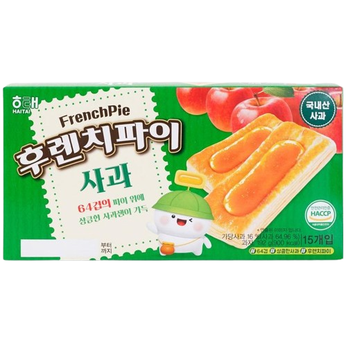 [Haitai] French Pie Apple is a representative and long-selling snack from Haitai, consistently loved since the original was launched in 1982. This iconic biscuit features a generous amount of sweet and tangy apple jam on top of a 64-layer crispy pie. Made with a stacked pastry dough, it boasts a wonderfully light and crispy texture. The rich taste, combining the savouriness of the pie with the sweetness of the apple jam, creates a perfect harmony of flavours.