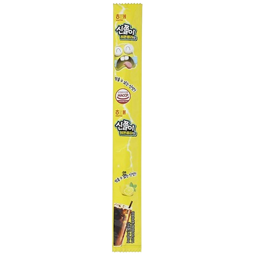 [Haitai] Sinjjori Lemon Cola Flavour is a fun and electrifying treat with an unstoppable sour taste. This ‘Sinjjori’ (Sour Chewy) candy features a long, flat, and chewy strip coated in a super sour powder, which gives way to a sweet candy beneath. This exciting version combines the zesty, tangy taste of lemon with the classic sweet flavour of cola, creating a unique and delicious taste sensation. It is an intensely flavourful and fun-to-eat candy that delivers a truly powerful sour kick.