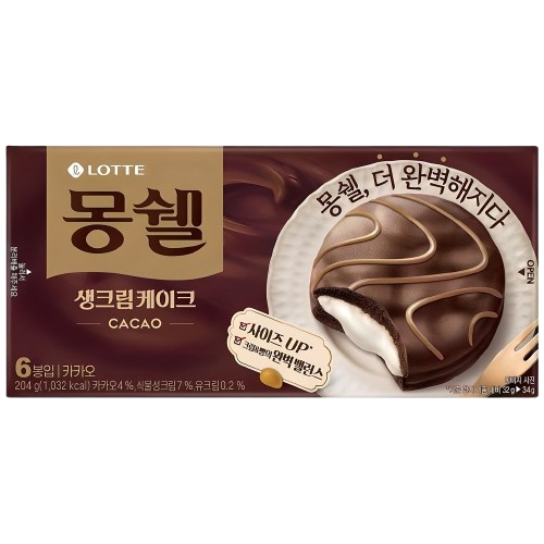 [Lotte] Moncher Real Cream Cake Cacao contains premium real cream made from locally sourced ingredients. Encased in velvety chocolate and featuring a rich cacao sponge, this sweet dessert melts in your mouth, offering a luxurious taste experience. Perfectly paired with coffee or tea, it elevates any moment into a delightful treat.