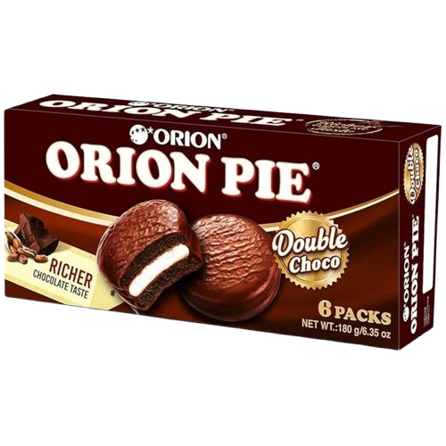 [Orion] Choco Pie Double Choco delivers an indulgent upgrade to the classic Choco Pie, featuring a richer chocolate taste in every bite. Coated in a thicker layer of premium chocolate, complemented by moist chocolate cake layers and a subtly flavoured chocolate marshmallow filling, this treat is perfect for true chocolate lovers.